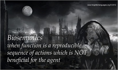 Black biosemiotics agrees that, as the number of perceived signals increased in evolution, agents learned how to integrate them into meaningful categories representing various objects and situations, of which the usual ones are food items, partner agents, and enemies. Agents also learnt to predict events using models. These classifications and models represent the knowledge of an agent about itself and its environment, but in a self-destructive system that knowledge is used to destroy the system, at rate faster than dissipation would expect.